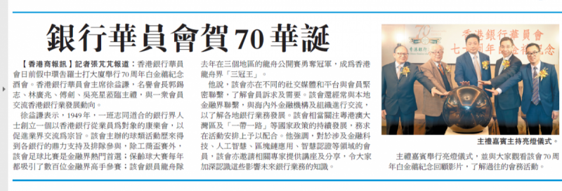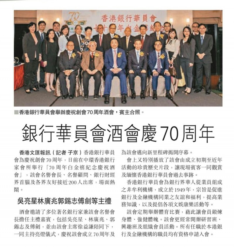 2019/03/21 為香港銀行華員會70周年白金禧紀念酒會,首先多謝各位嘉賓抽空出席本會70周年紀念酒會及各行致送花籃到賀!