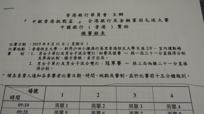 2019/08/11舉行的羽毛球大賽