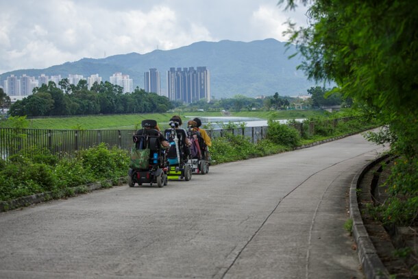 路面 大部分為寬闊的水泥徑或行人道,部分為車道